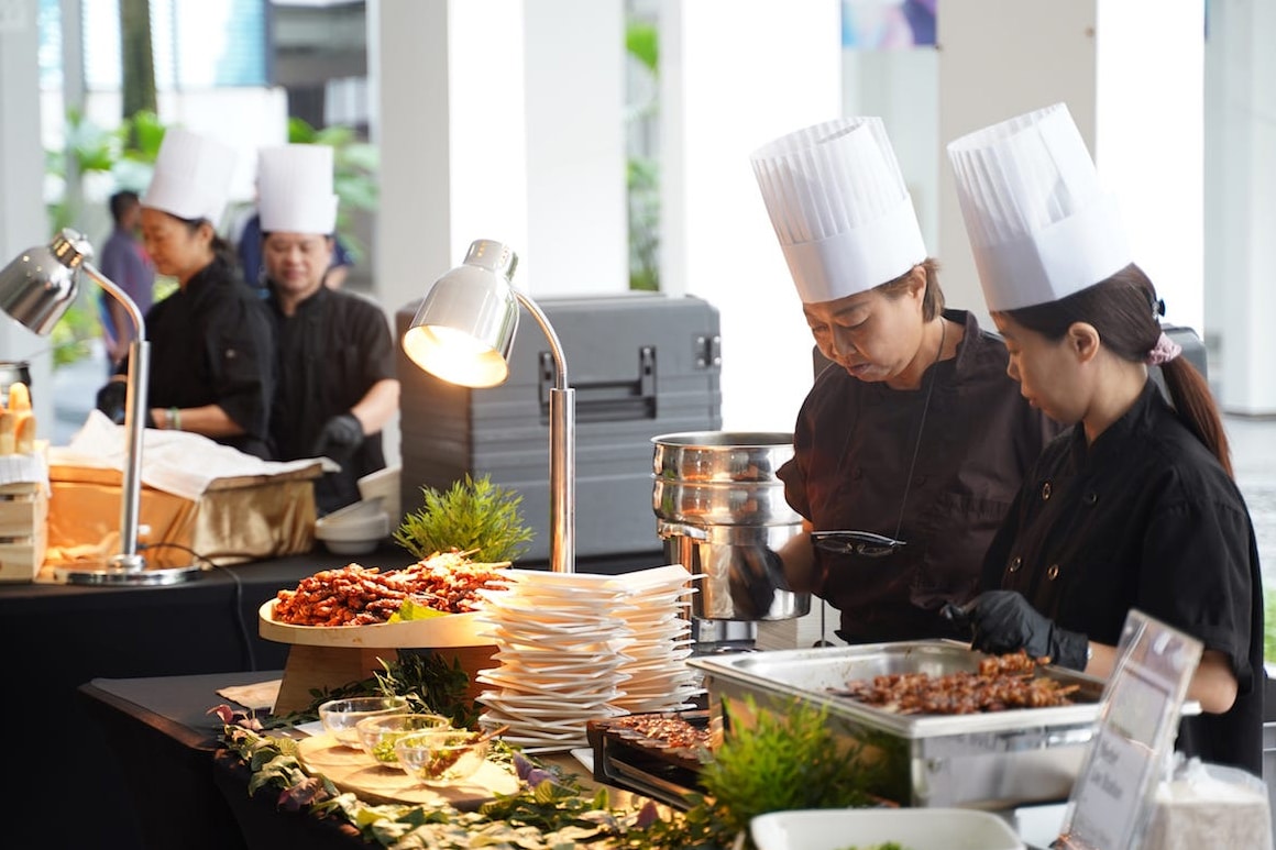 More ingredients. Guests tend to eat more at live stations because the food looks fresh and appealing. You need to order 20-30% more than traditional service just to account for this.